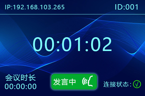 屏幕 | 支持发言时常显示,话筒IP地址连接状态等信息。 |